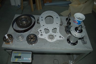 Le "kit" du réducteur complet, alternateur inclus. |