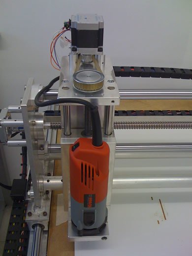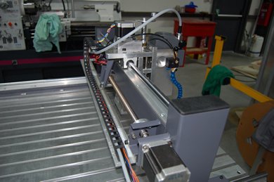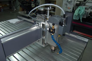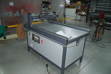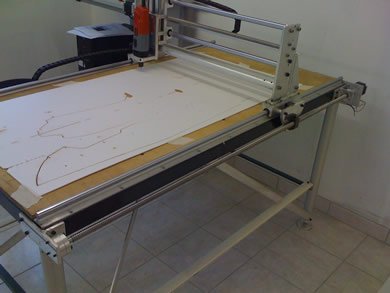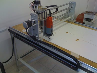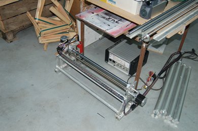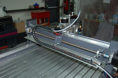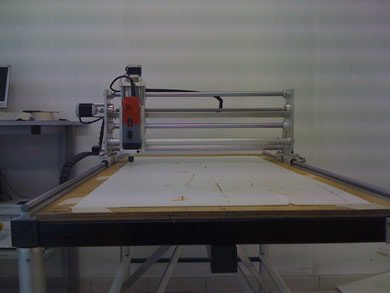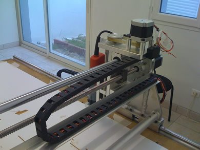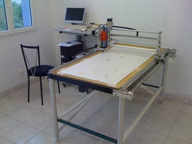 | La machine était au départ conçue pour découper du Depron, Balsa et Contreplaqué fin pour un usage essentiellement modéliste. Finalement elle a plutôt été utilisée pour découper de l'aluminium dans des épaisseurs allant de 1 à 6mm pour la construction d' ULM !!! Il est évident qu'un sérieux manque de rigidité c'est fait ressentir, bien qu'elle ai pu découper quelques m² d'alu... J'ai décider de la reconstruire afin de la rendre plus rigide, c'est parti !! Je l'ai équipée d'une broche HF de 1.5Kw et d'un système de refroidissement/lubrification par micro-pulvérisation. Moteurs et système de commande ont été conservés. La précision (ou jeu) à vide mesurée est de 1/100 de mm !!! Ce qui est assez remarquable car c'est la résolution d'un pas. Ses courses sont de 1250mm*650mm*100mm. A suivre en utilisation... |