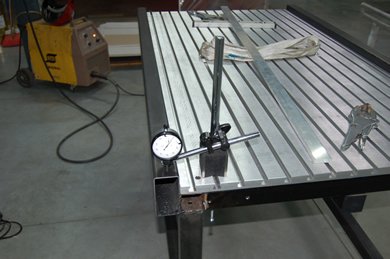 Calage des supports de rails X au comparateur. |