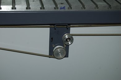 Vue sur l'entrainement par courroie des vis a billes X |