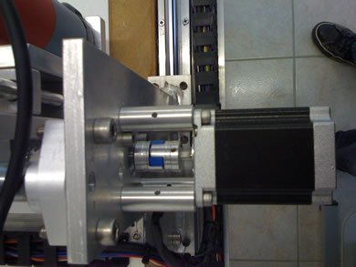 L'axe Y vue côté moteur, accouplement par cardan. |